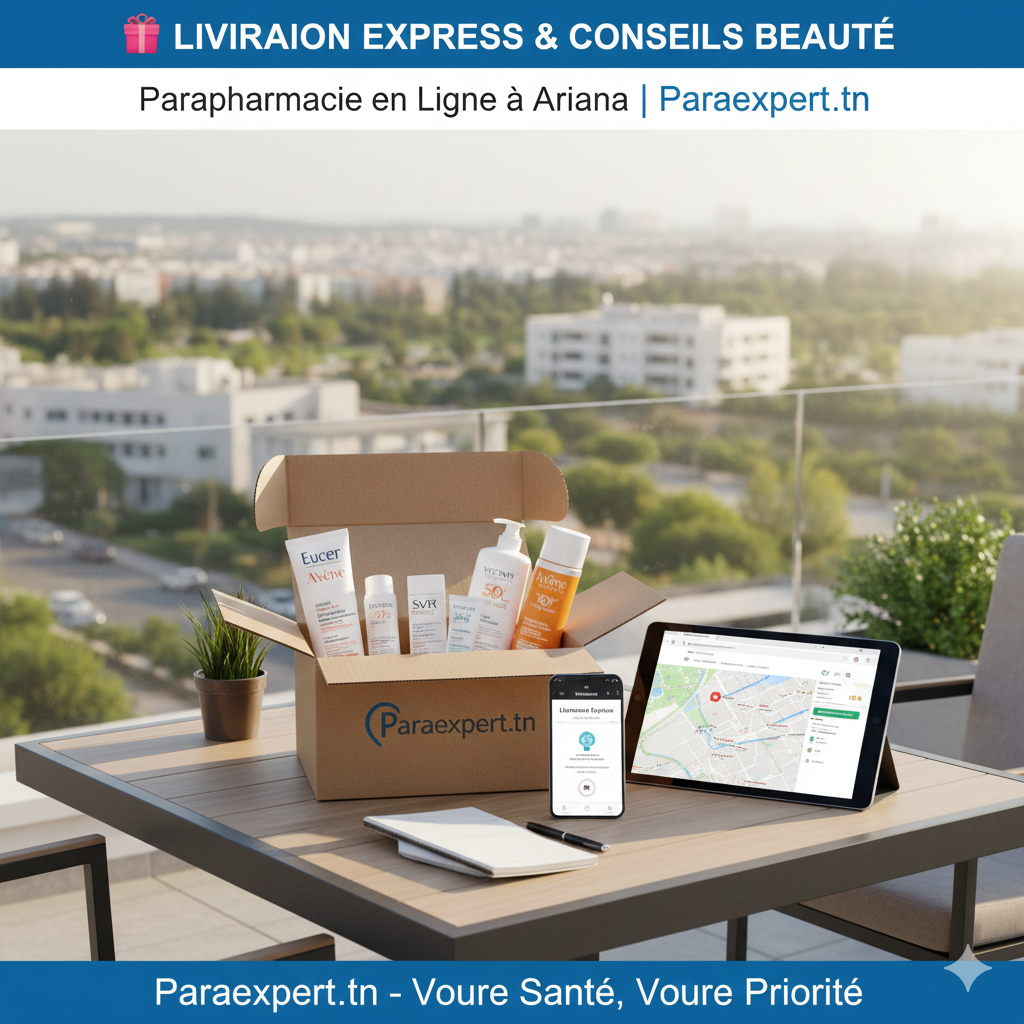 Chez Paraexpert.tn, nous livrons l’excellence des soins dermo-cosmétiques directement à votre domicile ou sur votre lieu de travail, de Borj Louzir aux pôles technologiques d’El Ghazala.