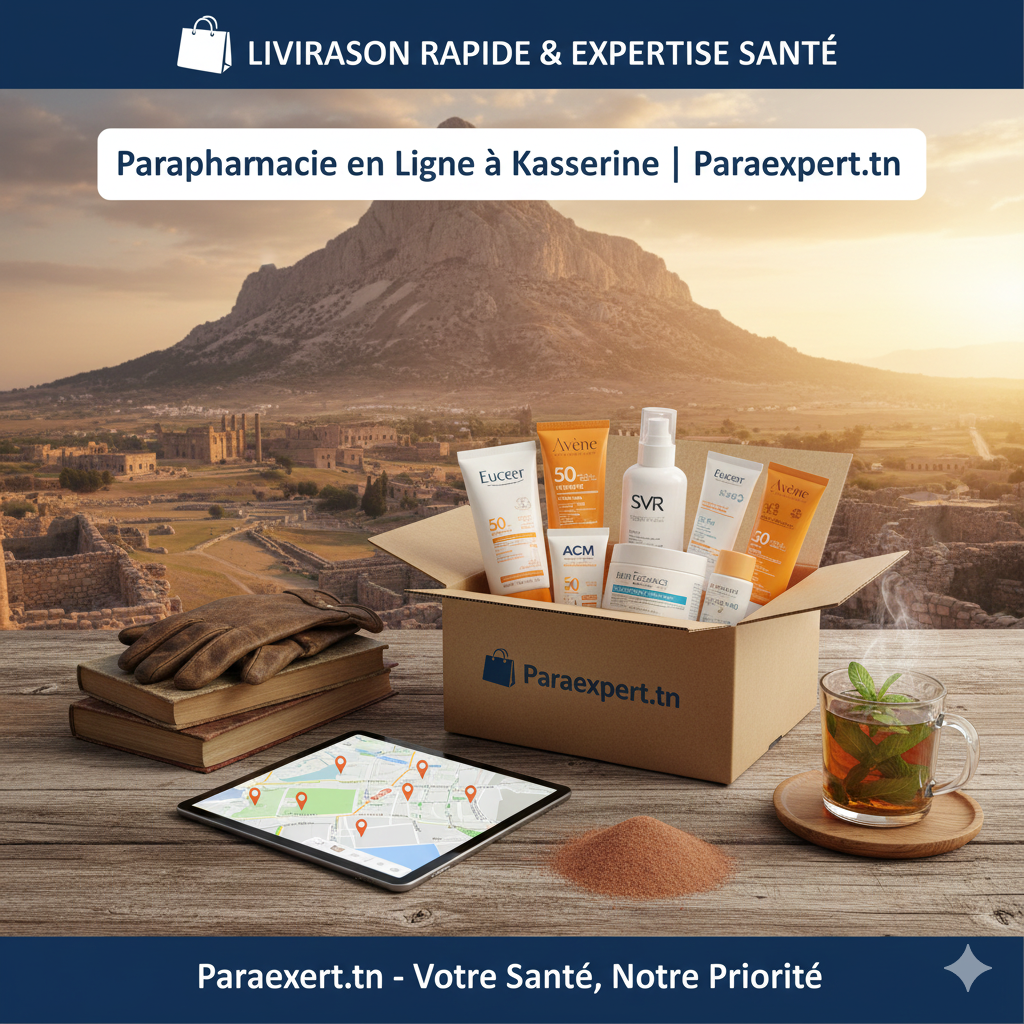 À Kasserine, la majesté du Mont Chaambi s’accompagne d’un climat continental rigoureux : des hivers marqués par un froid vif et des étés secs et ventés. Ces conditions extrêmes exigent une attention particulière pour protéger votre peau du dessèchement et renforcer votre immunité. Trouver une parapharmacie en ligne à Kasserine de confiance est essentiel pour accéder aux meilleurs soins dermo-cosmétiques sans avoir à vous déplacer.