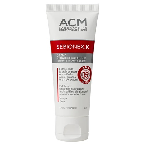 - “Enfin, une crème qui contrôle réellement la kératinisation de ma peau ! ACM SÉBIONEX K a transformé ma routine de soins.”