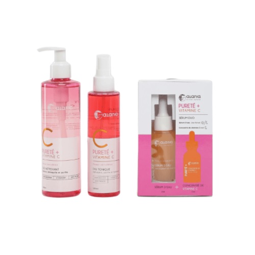 - Alania Pureté+ Vitamine C Eau Tonique 150ML : Un tonique hydratant enrichi en vitamine C qui rafraîchit, tonifie et diffuse un éclat sain et visible.