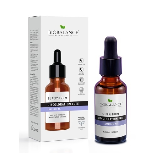 Biobalance Sérum Discoloration Free 30 ml est une solution naturelle et efficace contre les taches brunes. Grâce au Lumiskin, il réduit la pigmentation excessive, illumine et uniformise le teint, sans agresser la peau. Utilisé régulièrement, il aide à retrouver une peau éclatante et homogène.
