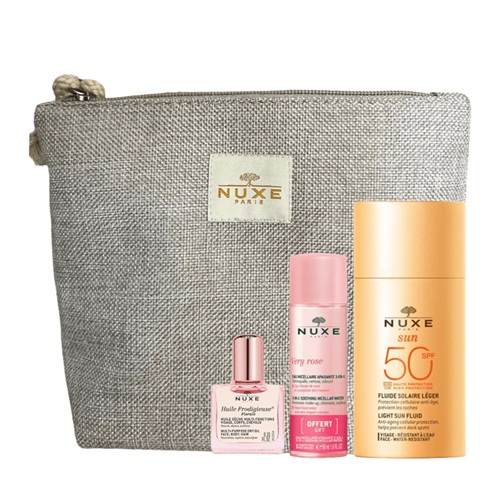 Découvrez le Coffret Nuxe pour une Peau Rayonnante : Sun Fluide Solaire, Very Rose Eau Micellaire et Huile Prodigieuse Florale !