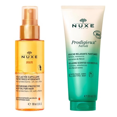 Le coffret Nuxe Sun Huile Lactée Capillaire & Gelée de Douche Néroli incarne l’excellence du soin solaire et capillaire made in France.