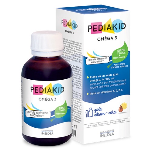 Le sirop Pediakid Oméga 3 est conçu pour les enfants en pleine croissance. Ainsi, il favorise le bon fonctionnement cognitif, la mémoire et la concentration. De plus, grâce à son délicieux goût citron-cola, il devient un complément agréable à prendre au quotidien.