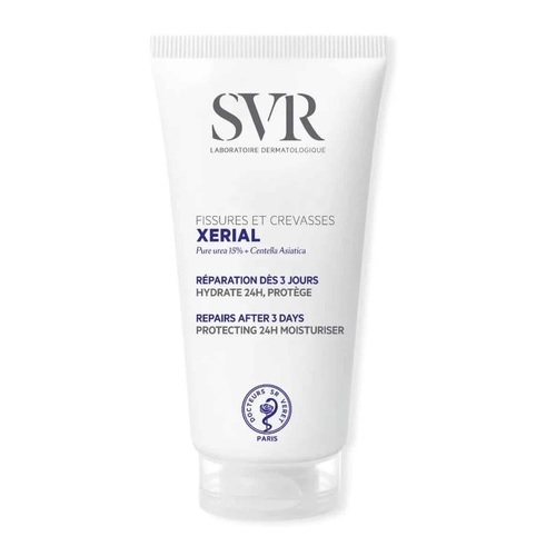 SVR Xerial Fissures & Crevasses est un soin intensif à la texture riche et fondante. Il combine des actifs nourrissants comme le beurre de karité, l’huile d’argan et l’aloe vera, qui apportent une hydratation immédiate tout en renforçant la barrière cutanée. De plus, sa formule contient 30 % d’urée et de la Centella Asiatica, reconnus pour leurs vertus réparatrices.