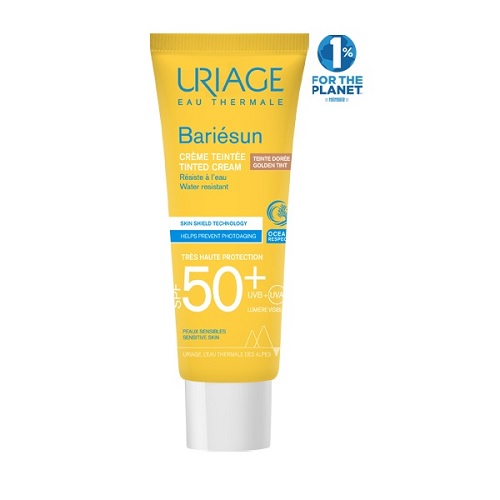 La Crème Teintée Dorée SPF50+ Uriage BARIÉSUN allie à la perfection protection solaire et perfectionnement du teint pour une peau lumineuse et protégée tout au long de la journée.